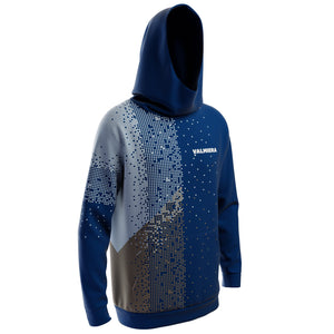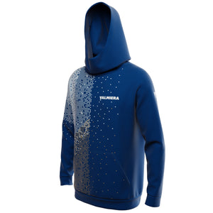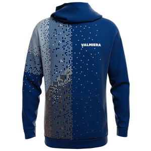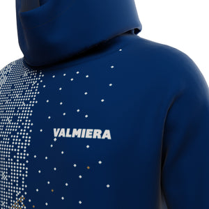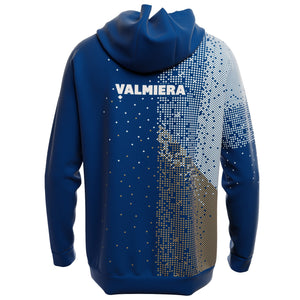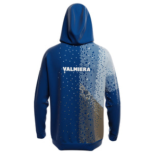 Regulāra piegriezuma Valmieras Sporta Skolas džemperis - hoodie ar oderētu kapuci, lielu priekšējo ķengura kabatu un manžetēm piedurknēs, izgatavots no ļoti silta un mīksta PolarPoly materiāla, kam ir mitruma atgrūdošas un vēja aizturošas īpašības, izcila termoregulācija, kā arī nodilumizturība, tādējādi paildzinot apģērba kalpošanas laiku. Hūdijs lieliski sader ar saskaņota dizaina treniņbiksēm vai legingiem.
