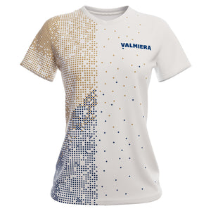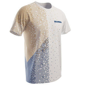 Regulāra piegriezuma Valmieras Sporta Skolas T-krekls, ikdienai un sportiskām aktivitātēm ar īsām piedurknēm, izgatavots no materiāla ar labu gaisa caurlaidību, mitruma novadošām īpašībām un augstu izturību pret nodilumu, nodrošinot komfortu un kustību brīvību. T-krekls lieliski sader ar saskaņota dizaina treniņbiksēm, jaku, hūdiju, legingiem un vīriešu vai sieviešu sporta šortiem.